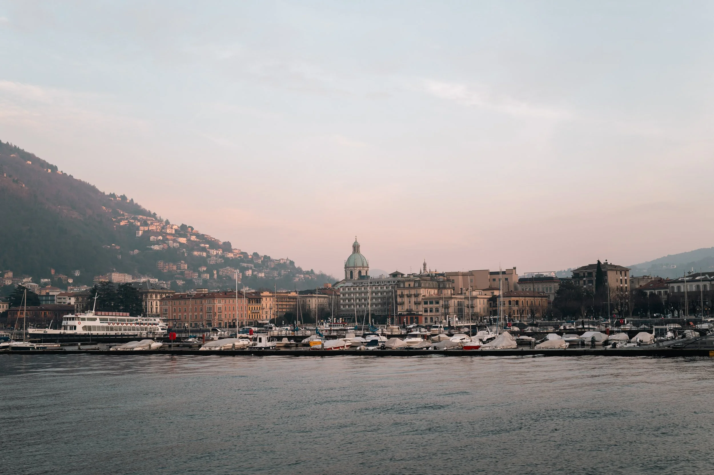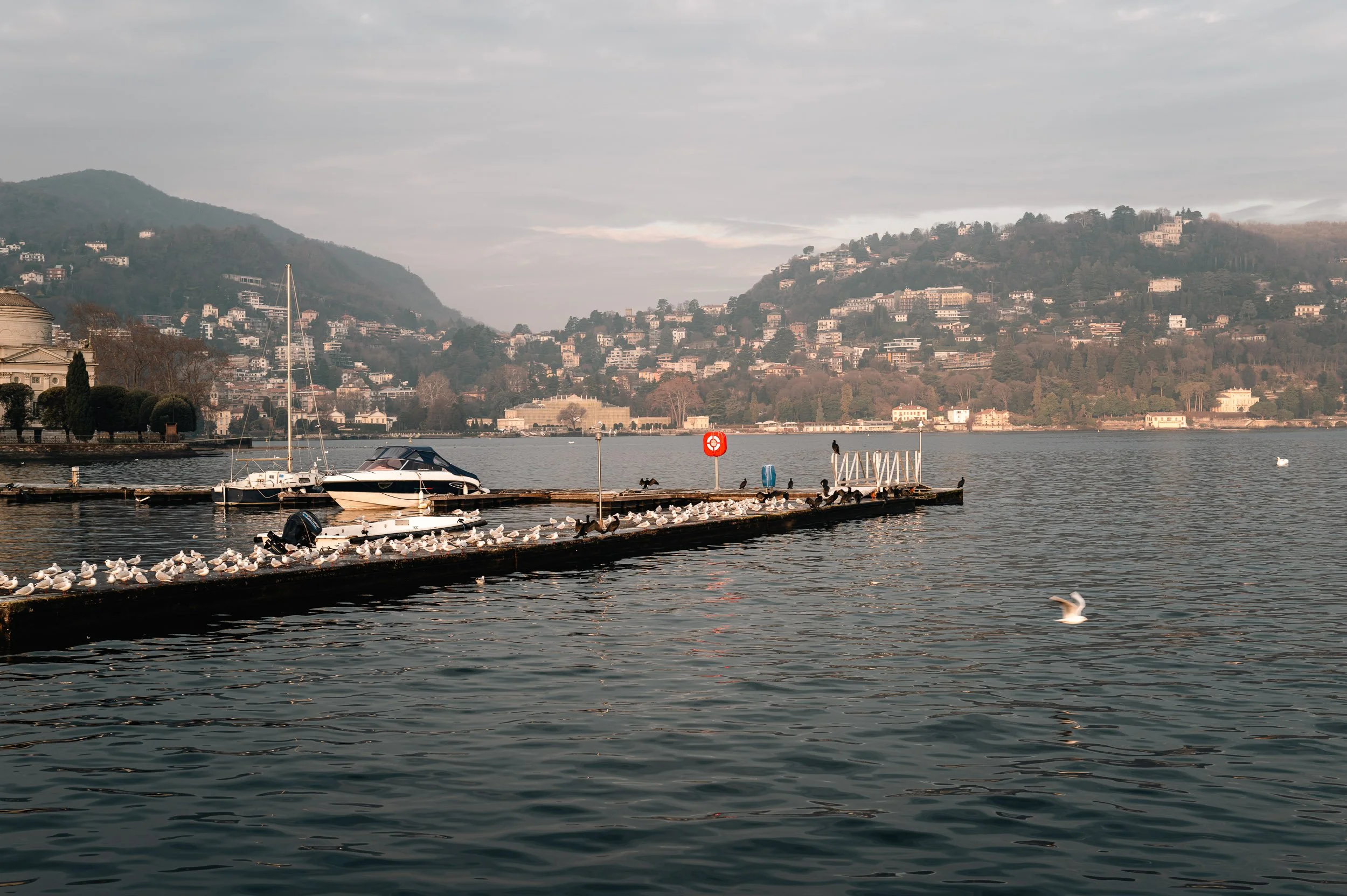 Above: A quiet morning at Como harbour, seen from Palazzo Venezia hotel